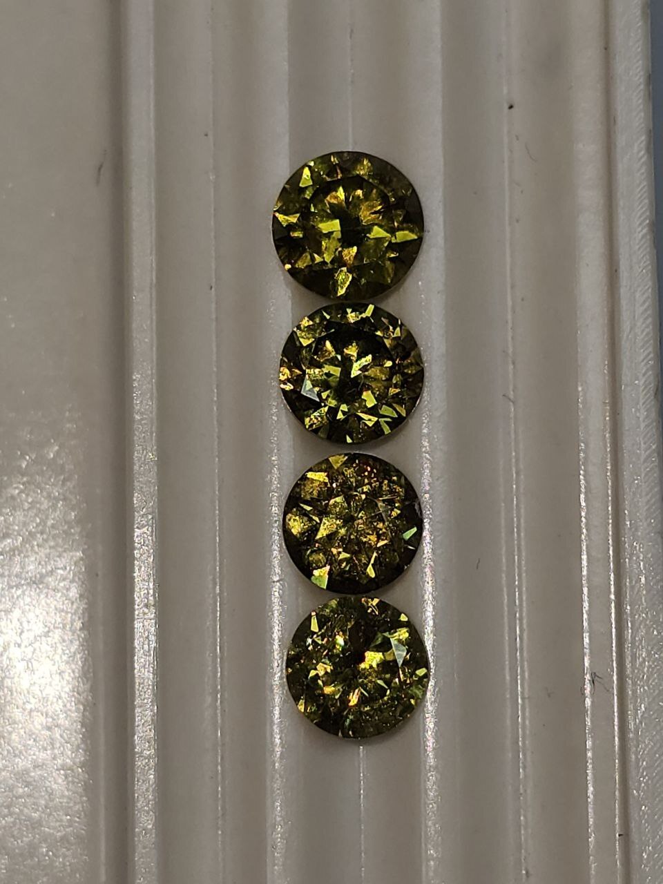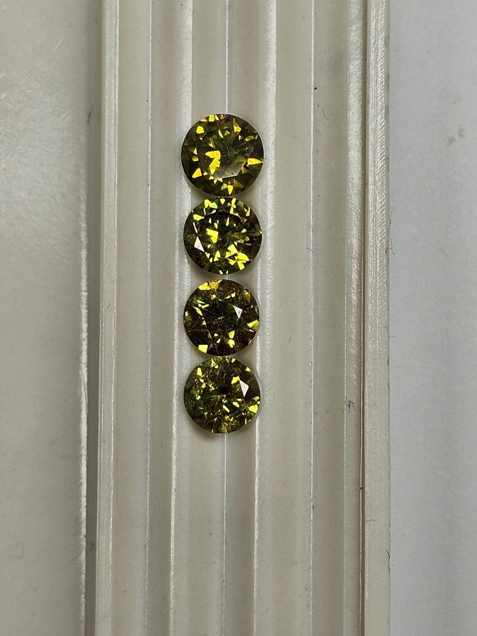 Главная / Каталог / Демантоид / Топазолит / Круг. Гарнитур 5,45-5,15-5,00-5,00 мм, 5/1, вес гарнитура: 2,64 ct.